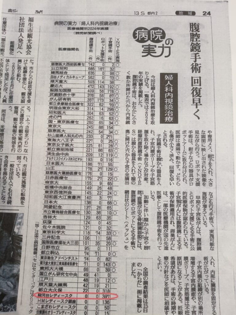 当院が読売新聞の病院の実力に掲載されました(2024年実績)